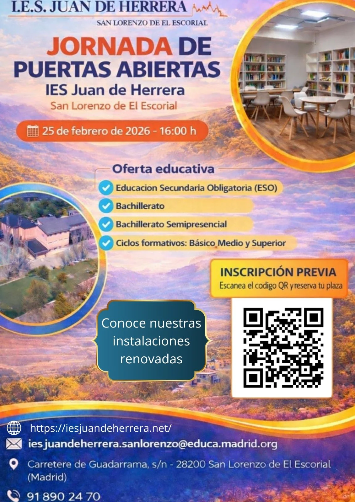 Nos complace a profesores y alumnos invitaros a las Jornadas de Puertas Abiertas del IES Juan Herrera de este curso 2019/20.